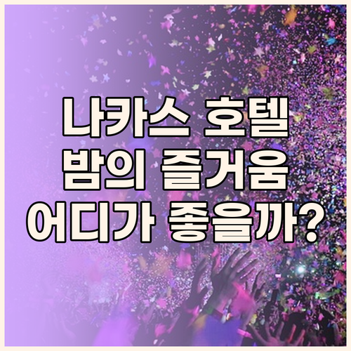 이 정보를 참고하여 자신에게 맞는 호텔을 선택하고, 안전하고 즐거운 나카스 밤 문화를 경험하시길 바랍니다.